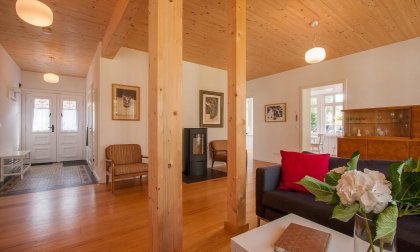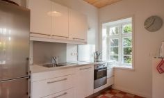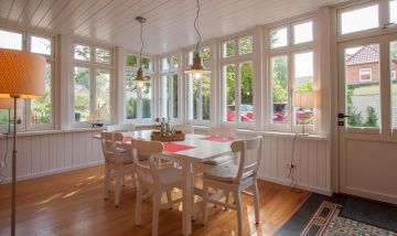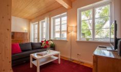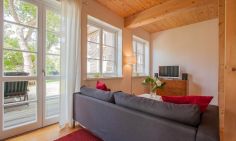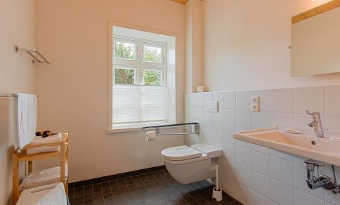 In der Erdgeschosswohnung erwartet dich ein großzügiger Eingangsbereich, von dem du direkt in den hellen Wohnbereich mit gemütlicher Sitzecke und Kaminofen gelangst. Die offene Küche und der lichtdurchflutete Essbereich im Wintergarten sorgen für geselliges Kochen und Klönen. Des Weiteren stehen dir ein Schlafzimmer mit Doppelbett, ein zweites Schlafzimmer mit zwei Einzelbetten sowie ein Bad mit Dusche/WC zur Verfügung. Die Wohnung wurde behindertenfreundlich geplant und mit breiten Türöffnungen, Badezimmervorrichtungen, einer ebenerdigen Dusche, einen unterfahrbaren Waschtisch sowie einer Rampe am Wintergarten eingerichtet. Das bedeutet vor allem für Rollstuhlfahrer optimale Bewegungsfreiheit.