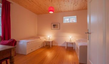Der großzügige und liebevoll gestaltete Garten mit Sitzbank unterm Baum kann von allen drei Einheiten des Ferienhauses genutzt werden. Ebenso steht der Gemeinschaft eine Tischtennisplatte, ein Basketballkorb, Fußballtore und ein Bollerwagen zur Verfügung.