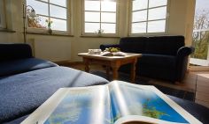 Die Wohnung hat einen wunderbaren Erker mit vielen Fenstern. Somit hat man einen unvergesslichen und wunderschönen Blick direkt Richtung Bodden. Und bei Glück ist ein wundervoller Sonnenaufgang zu sehen! Die Lage der Wohnung ist einmalig; am Rand von Ahrenshoop, ganz ruhig gelegen. Und das Beste: Hunde sind willkommen!