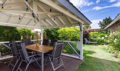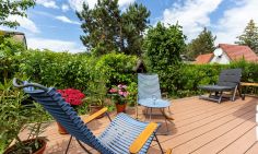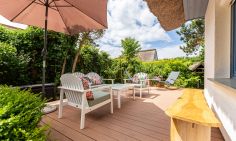 Auf dem 800 Quadratmeter großen und sehr liebevoll angelegten Grundstück befinden sich heimischen Pflanzen, sonnige und schattige Plätze, ein Strandkorb, eine Tischtennisplatte, ein Sandkasten für die Kleinen sowie zwei Außenterrassen (eine davon überdacht). Vier Sonnenliegen und eine Hängematte versprühen zusätzliches Urlaubs-Feeling und laden zu relaxten Stunden im Garten ein. Mit dem Weber-Elektrogrill kannst du zudem tolle Sommer-Barbecues für die ganze Familie veranstalten. Des Weiteren steht dir ein Gartenhäuschen zur Verfügung, welches beispielsweise Platz für Kinderwagen und Strand-Bedarf bietet. Ein Strand-Buggy steht bereits drinnen und kann kostenfrei während des Urlaubs von dir genutzt werden.