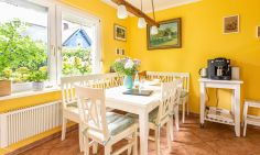 Das direkt am Deich liegende Ferienhaus Ankerherz ist eine Wohlfühloase. Es ist liebe- und geschmackvoll eingerichtet, hochwertig ausgestattet, es fehlt an nichts. Selbst Bücher und Gesellschaftsspiele sind in breiter Fülle vorhanden. Und wer Arbeiten und Erholung verbinden möchte, findet hier hervorragende Bedingungen. Schreibtische mit Monitoren und entsprechenden Anschlüssen für das eigene Notebook sowie WLAN bieten ideale Voraussetzungen für mobiles Arbeiten. Sowohl Haus und Garten sind weiträumig, so dass man viel Platz für geselliges Beisammensein, aber auch zum individuellen Relaxen hat. Vielen Dank für den perfekten Aufenthalt im Ankerherz.