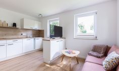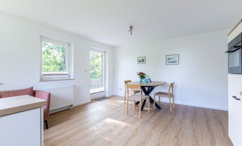 Die Ferienwohnung befindet sich im Erdgeschoss eines neu sanierten Hauses mit insgesamt sechs Ferienobjekten. Modern, klar und mit Blick fürs Wesentliche gestaltet, bietet die Wohnung eine angenehme Mischung aus zeitgemäßem Komfort und entspannter Zurückhaltung – ideal für alle, die Erholung suchen. Innen erwartet dich ein helles, luftiges Ambiente, ein gemütliches Schlafzimmer, ein modernes Bad und ein einladender Wohn- und Küchenbereich, der Kochen, Lesen oder einfach mal gar nichts tun zum Genuss macht.