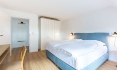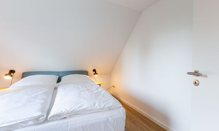 Zwei Schlafzimmer mit hochwertigem Boxspringbett laden zu erholsamen Nächten ein und bieten ausreichend Platz für Paare oder Familien. Das moderne Bad überzeugt mit großzügiger Dusche und einer angenehmen Atmosphäre. Vom sonnigen Balkon aus genießt du den Blick in die ruhige Umgebung – perfekt, um den Tag entspannt ausklingen zu lassen.