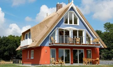 In idyllischer, absolut ruhiger Lage und mit traumhaften Panorama-Boddenblick liegt dieses wunderschöne Ferienhaus unter Reet und beherbergt zwei abgeschlossene Wohneinheiten. Du möchtest im Urlaub aktiv sein? Dann wird es dich besonders freuen, dass gleich neben dem Haus der Radwanderweg entlang führt. Dieser führt bis nach Prerow und weiter nach Zingst. Dabei bieten dir mehrere Beobachtungsstationen einen tollen Blick auf die einzigartige Vogelwelt der Boddenwiesen. Auch der Nationalpark grenzt direkt an Wieck und bietet fantastische Rad-und Wanderwege durch den Darßwald bis zum Weststrand.