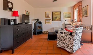 Das Appartement ist sehr gemütlich eingerichtet , die Ausstattung sehr gut, , sogar Bücher stehen im Regal, und der Kamin hat uns herrliche Momente geschenkt. Das Schlafzimmer ist ein bischen dunkel ,da wirklich kaum Licht durch die Lage hineinkommen kann , aber man schläft da ja auch eigentlich nur. Das Bett ist schön groß, aber das Lattenrost knatscht ordentlich und die Matratzen sind sehr weich. Die Terrasse war so völlig ausreichend für das Wetter, aber bei der dichten Lage zu den beiden Nachbarn wäre vielleicht ein etwas besserer Sichtschutz im Sommer schöner. Sehr dankbar sind wir, das wir unseren Kater mitbringen durften , allerdings sind die Kosten( zusätzlich zur Endreinigung mit Tier), mit 15 Euro a Tag für uns zu hoch. Die Lage zum Ort und zum Strand ist prima und obwohl man direkt an der Straße wohnt sieht man durch die gute Bewachsung nichts davon und der Autolärm hält sich absolut in Grenzen. Wir haben uns wirklich sehr wohl gefühlt. Alles hier ist „ Jammern“auf hohem Niveau!,,,