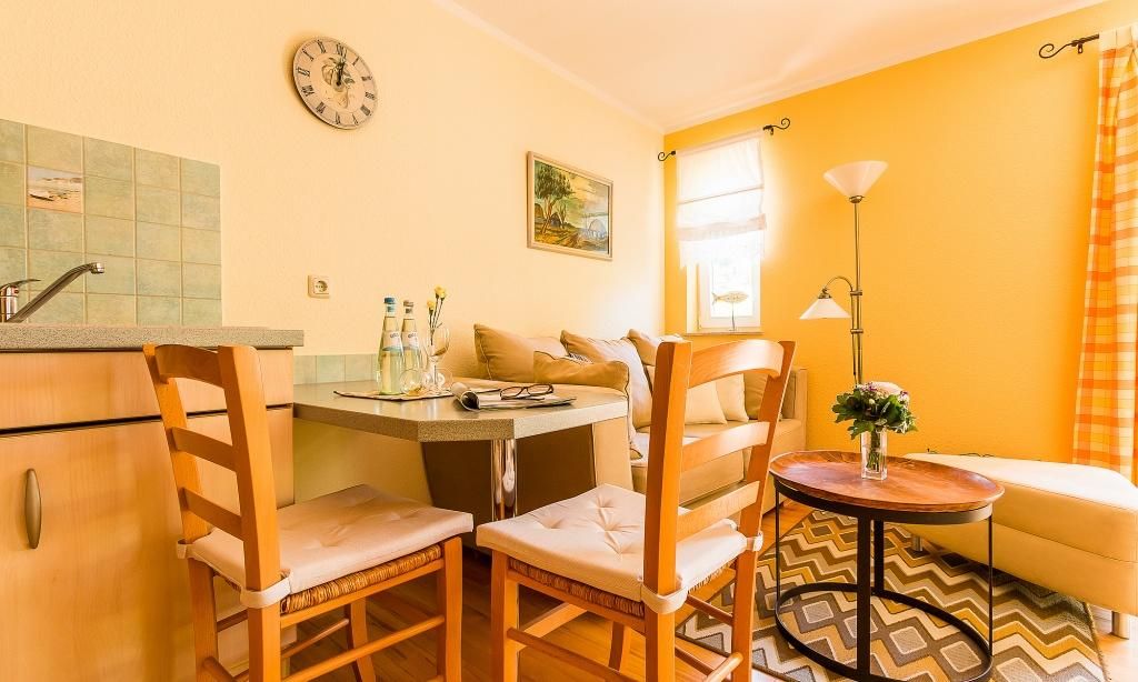 Die Wohnung liegt in einer sehr ruhigen schönen Gegend! Wir haben uns da wohl gefühlt! An der Küche gibt es nichts auszusetzen, wer harte Matratzen liebt wird dort gut schlafen! Das Bad ist gut und funktionell eingerichtet, leider gibt es Schimmel am Plissee und Fenster! Die Einrichtung vom Wohnzimmer ist in die Jahre gekommen und wirkt etwas zusammen gewürfelt! Probleme gab es mit dem Fernsehempfang.