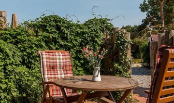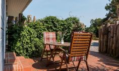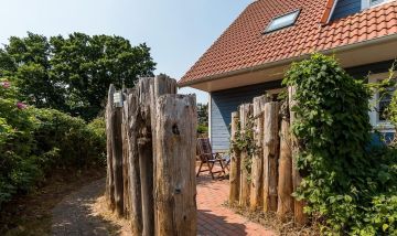 Eine kleine Terrasse gehört ebenfalls zur Wohnung. Genieße hier dein Frühstück bei Sonnenschein oder lasse deinen Urlaubstag bei einem Glas Wein ausklingen. Die fischlandtypischen Holzbuhnen vor der Terrasse sorgen für zusätzliche Privatsphäre und Ruhe in deinem Außenbereich. Ein abschließbarer Fahrradschuppen und ein PKW-Stellplatz stehen dir außerdem zur Verfügung.