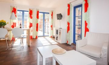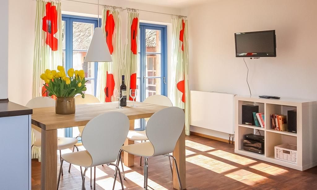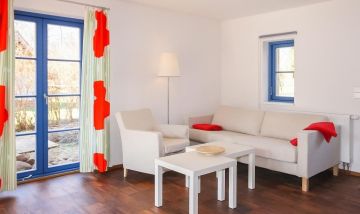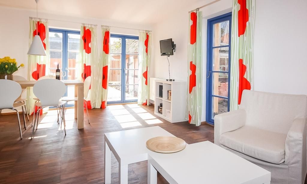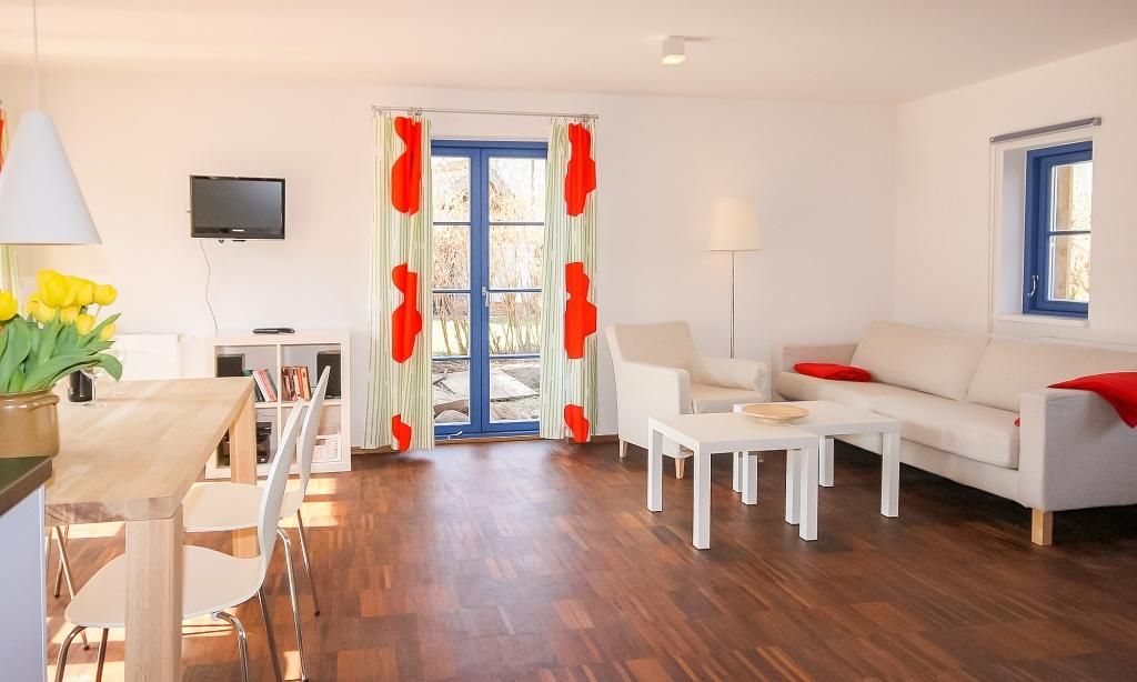 In die Jahre gekommen Ikea-Einrichtung mit ungepflegtem Boden und Mobiliar. Keine ausreichende Beleuchtung, weder im Haus noch am Parkplatz. Lage direkt am Strandübergang, zwei nette, kleine Terrassen. Die Agentur Meerfischland ist dagegen sehr empfehlenswert- Hilfsbereitschaft und Freundlichkeit super.