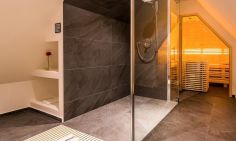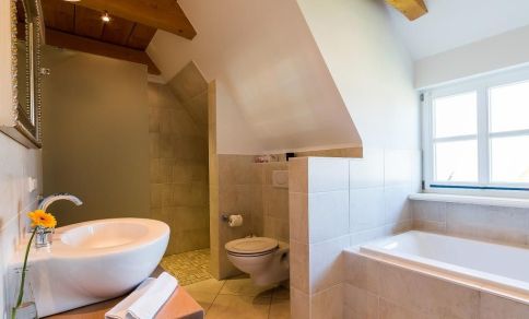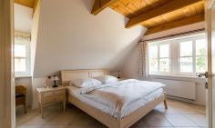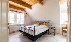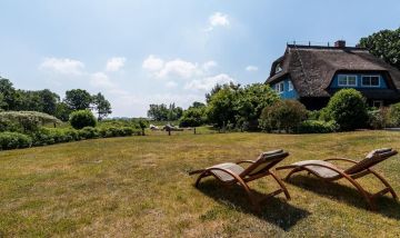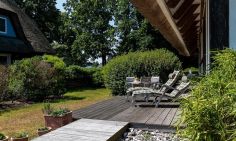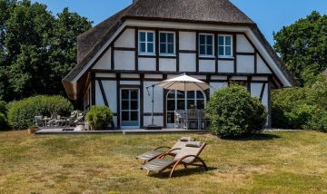 Im Erdgeschoss erwartet dich ein großzügiger und sonnendurchfluteter Wohnbereich, der mit seiner Holzständerbauweise und offenem Fachwerk für besondere Wohnatmosphäre sorgt. Mit seiner großzügigen Sofalandschaft, der offenen Küche und dem geselligen Essbereich wird der Wohnbereich schnell zum Mittelpunkt des Hauses. Weiterhin befinden sich im Erdgeschoss ein Bad mit Dusche/WC sowie ein Hauswirtschaftsraum. Über eine wunderschöne Echtholztreppe gelangst du ins Obergeschoss. Hier befinden sich die drei Schlafzimmer, wovon zwei mit einem Doppelbett und eins mit einem Einzelbett ausgestattet sind. Ein großes Bad mit Badewanne und Dusche/WC liegt ebenfalls auf dieser Etage. Der Spitzboden birgt ein weiteres Highlight. Denn hier erwartet dich ein exklusiver Wellnessbereich mit Sauna, einer großflächigen Dusche und zwei Ruheliegen. Ankommen und sofort Urlaubs-Feeling spüren - das geht mit diesem wundervollen Ferienhaus unter Reet.
