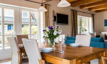 Wir waren mit der Familie (5 Personen) und hatten ausreichend Platz für alle. Eine großzügige Haushälfte, zum Garten hin gelegen mit 2 Terrassen und absolut ruhig. Insbesondere die Küche war hervorragend eingerichtet mit sehr vielen nützlichen Kleingeräten, das Kochen hat Spass gemacht. Im Gartenbereich waren ausreichend Stühle und Tische vorhanden, eine Freude, draussen zu essen. Es war ein sehr angenehmer Aufenthalt. Unser besonderer Dank geht wieder einmal an das gesamte Team von Meerfischland, die Betreuung an der Rezeption war wieder sehr gut und das Reinigungsteam hat wieder einmal beste Arbeit geleistet. Es ist immer eine Freude, ein bei Meerfischland angemietet Haus zu beziehen, tip top vorbereitet..