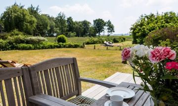 Wir haben 6 wunderbare Tage im Herbst in diesem Haus verbracht. Die Lage ist fantastisch mit seitlichem Blick auf den Bodden und die Möglichkeit bei schönem Wetter auf der Terrasse die Aussicht zu genießen. Die umliegenden Häuser waren alle mit genügend Abstand und man hat von den Nachbarn auch nichts mitbekommen - war aber auch nicht viel los zu der Zeit. Der Ort ist ideal für einen ruhigen Aufenthalt mit Wochenmarkt (Mittwoch/Samstag) innerhalb der Saison bis 31.10. Der Bäcker im Ort ist auch sehr gut. Mit dem Rad sind alle Orte und Strände sehr gut erreichbar. Wir kommen gern wieder.