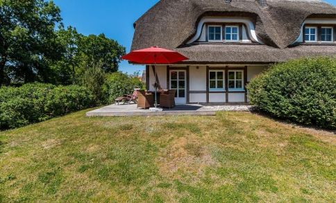 Im Erdgeschoss erwartet dich ein großzügiger und sonnendurchfluteter Wohnbereich, der mit seiner Holzständerbauweise und offenem Fachwerk für besondere Wohnatmosphäre sorgt. Mit seiner gemütlichen Couch, der offenen Küche und dem geselligen Essbereich wird der Wohnbereich schnell zum Mittelpunkt des Hauses. Weiterhin befinden sich im Erdgeschoss ein Gäste-WC sowie ein Hauswirtschaftsraum. Über eine wunderschöne Echtholztreppe gelangst du ins Obergeschoss. Hier befinden sich die drei Schlafzimmer, die jeweils mit einem Doppelbett ausgestattet sind. Ein großes Bad mit Badewanne und Dusche/WC liegt ebenfalls auf dieser Etage. Ankommen und sofort Urlaubs-Feeling spüren - das geht mit diesem wundervollen Ferienhaus unter Reet.