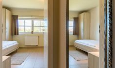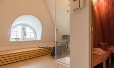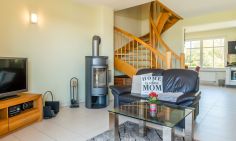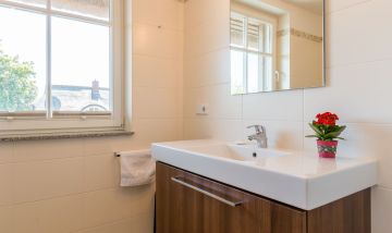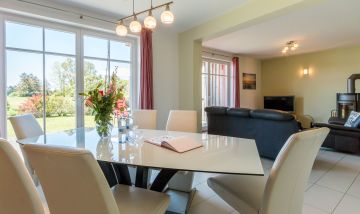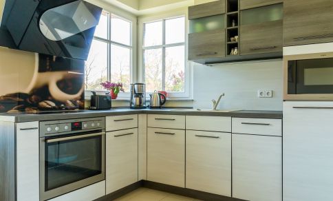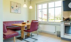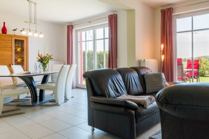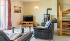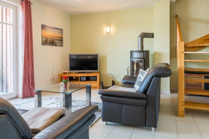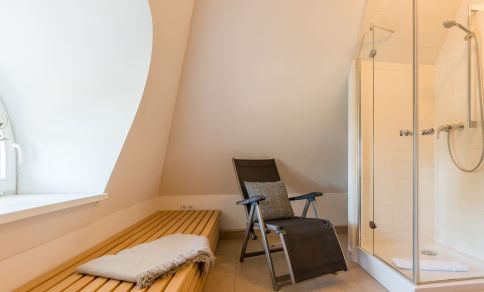Im Erdgeschoss empfängt dich der großzügige Wohnraum mit einer gemütlichen Sitzecke am Kaminofen. Der große Essbereich mit Blick in den Garten verspricht geselligen Momente beim Essen und für Spiele. Keine Wünsche offen lässt auch der offene Küchenbereich mit seiner komfortablen und funktionalen Einbauküche. Ein Gäste-Bad mit Dusche/WC befindet sich ebenfalls auf der unteren Etage. Vom Wohnbereich gelangst du direkt auf die großzügige Terrasse. Hier lassen sich entspannte Stunden nach einem ereignisreichen Tag verleben. Das erste Obergeschoss verfügt über ein Schlafzimmer mit einem Doppelbett sowie ein weiteres Schlafzimmer mit zwei Einzelbetten. Weiterhin schließt sich das moderne Badezimmer mit Dusche/WC an. Der Spitzboden hält eine kleine Wellnessoase für dich bereit. Hier kannst du ausgiebig saunieren - ein tolles Highlight, besonders an den kühleren Tagen. Ein Ruhebereich mit Dusche gehört selbstverständlich dazu.