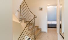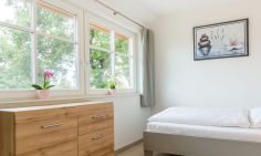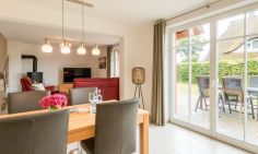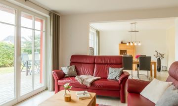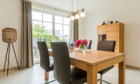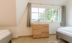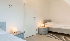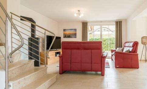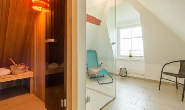 Im Erdgeschoss erwartet dich ein lichtdurchfluteter und großzügig gestalteter Wohnbereich mit gemütlicher Sofaecke am Kamin und großem TV. Offen und dennoch abgetrennt vom Wohnbereich befindet sich die moderne und vollausgestattete Küche mit sonnigem Essbereich. Hier lässt es sich nach ganz nach Gusto Kochen und Klönen. Ein erstes Tageslichtbad mit Dusche und WC gehört ebenfalls zum Erdgeschoss. Über eine Treppe gelangst du in das erste Obergeschoss und den Schlafbereich des Hauses. Das Hauptschlafzimmer ist clean gestaltet, mit hochwertigem Doppelbett, Kleiderschrank und Verdunklungsvorhängen für einen erholsamen Schlaf. Das zweite Schlafzimmer verfügt über zwei Einzelbetten. Ein modernes Tageslichtbad mit Dusche und WC bietet zusätzlichen Wohnkomfort und genug Rückzugsraum für die ganze Familie. Ein besonderes Highlight ist der kleine Wellnessbereich im Dachgeschoss mit Sauna, Dusche und Ruhebereich.