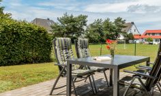 Der Außenbereich begeistert durch seine große Steinterrasse mit Bestuhlung, den du vom Wohn- und Küchenbereich betreten kannst. Umgeben von einem gepflegten Grundstück, genießt du hier die Privatsphäre, die du dir von einem Ferienhaus wünscht. Zum Ferienobjekt gehören außerdem zwei PKW-Stellplätze sowie ein abschließbares Gartenhaus.