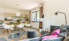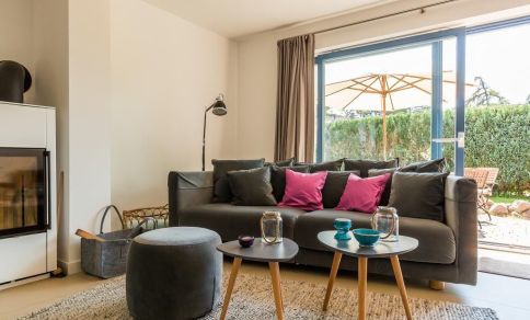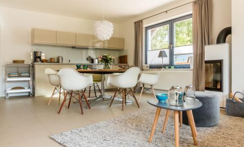 Die Erdgeschosswohnung begeistert durch ihren Mix aus schlichter Eleganz und skandinavischer Gemütlichkeit. In dem großzügigen Wohn- und Essbereich erwarten dich zwei gemütliche Sofas am Kaminofen und bodentiefe Fernster. Die hochwertige Küchenzeile ist im Wohnraum integriert und bietet dir zusammen mit dem Esstisch einen kommunikativen Raum zum Essen, Kochen und Klönen. Natürliche Materialien wie Holz und Rattan finden sich auch in den zwei modernen Schlafzimmern wieder, die mit einem Doppelbett und zwei Einzelbetten ausgestattet sind. Hier lässt es sich wunderbar vom Urlaub träumen. Ein Badezimmer mit Dusche/WC und Handtuchtrockner machen den Wohnkomfort perfekt.