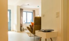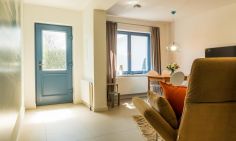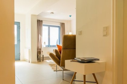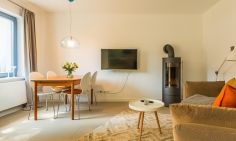 Ein heller und individuell gestalteter Flur führt dich zur Wohnung. Die moderne Erdgeschosswohnung ist im beliebten skandinavischen Stil eingerichtet und strahlt mit seinen warmen Naturtönen Wohlfühlatmosphäre aus. Ihre Ausstattung ist insgesamt neu, hochwertig und geschmackvoll. Der Wohnbereich mit seinem Sofa am Kaminofen, Rattansessel, der maritime Esstisch und die vollständig eingerichtete Küchen machen den Raum zum Mittelpunkt der Wohnung. Das Schlafzimmer ist mit einem hochwertigen Doppelbett ausgestattet. Ein Badezimmer mit Dusche/WC und Handtuchtrockner machen den Wohnkomfort für zwei Personen perfekt.