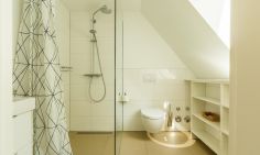 Über eine etwas steilere Treppe erreichst Du das zweite offene Schlafzimmer im Dachgeschoss, welches über ein Doppelbett sowie ein weiteres Liegebett verfügt.