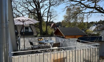 Die 2020 neu gebaute, großzügige Dachterrasse (circa 15 qm), ausgestattet mit Esstisch und Bestuhlung sowie Deckchair lädt zum Sonnenbaden und Lesen von spannenden Büchern geradezu ein.