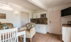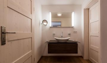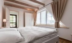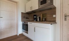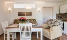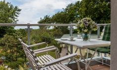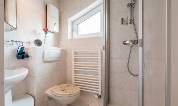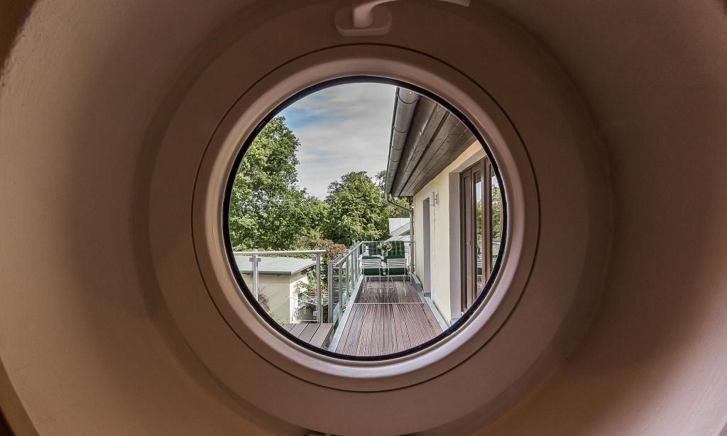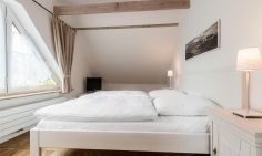 Die Wohnung im Dachgeschoss besticht durch ihre Nord-West-Lage. Hier genießt du die Sonnenuntergänge über der Ostsee entweder direkt vom Wohnbereich aus oder von der großzügigen Dachterrasse. Vom modernen Bad mit Dusche/WC kannst du durch ein Bullauge auf die Dachterrasse blicken. Das Waschbecken wurde im Eingangsbereich integriert. Geschmackvoll eingerichtet empfängt dich der gemütliche Wohnbereich mit Küchenzeile. Von hier aus blickst du bereits auf das Wasser. Ein Schlafzimmer mit Doppelbett und Kleiderschrank ist direkt an den Wohnbereich angeschlossen. Zwei Stufen tiefer liegt das zweite Schlafzimmer, ebenfalls mit einem Doppelbett und Kleiderschrank ausgestattet sowie ein zweites Bad mit Dusche/WC. Über den kleinen Flur gelangst du auf die tolle Dachterrasse. Hier kannst du es dir gut gehen lassen!