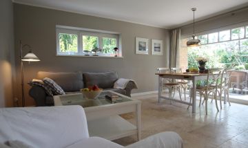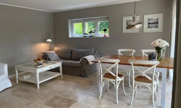 Ein kleines aber feines Häuschen, eingebettet von großen Eichen, Birken, etc., ein Paradies für Vögel. Es liegt am Ende eines sowieso schon ruhigen Sandwegs mit sehr wenig Verkehr, absolut ruhig. Man kann vom Haus direkt auf dem Radweg starten. Der erste Strandzugang ist in nur wenigen Minuten fußläufig erreichbar. Das Haus ist klein aber für zwei Personen völlig ausreichend. Die steile Treppe nach oben ist nicht für jedermann geeignet, vor allem wird es schwierig mit dem Gepäck. Die Terrasse ist schön angelegt, hier hat man sowohl Schatten durch die großen Bäume ringsum aber auch schöne Sonnenplätze. Wir haben uns sehr wohlgefühlt.
