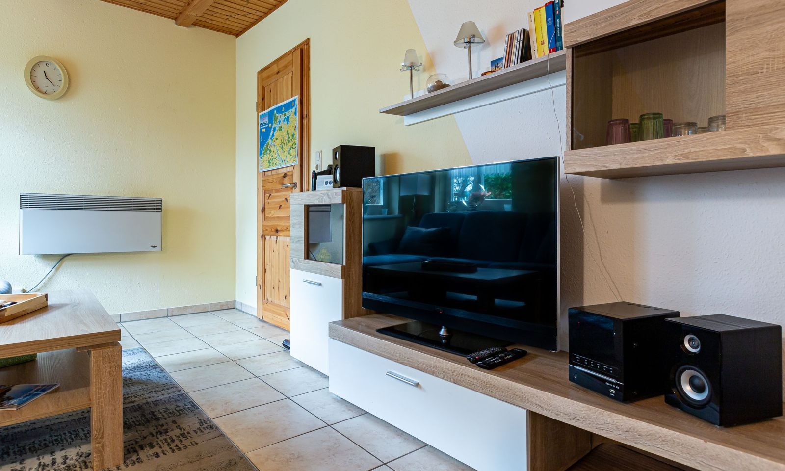 Die Lage des Bungalows ist besonders reizvoll: Ganz nah am Prerowstrom und dem Hafen gelegen, erreichst du die Ostsee in etwa 15 Minuten zu Fuß. Das Zentrum von Prerow ist ebenfalls nur rund 20 Minuten per pedes entfernt. Die Umgebung besticht durch ihre Ruhe und Idylle sowie die direkte Anbindung an das Rad- und Wanderwegenetz – ideal für aktive Auszeiten inmitten der Natur. Hier genießt du eine perfekte Kombination aus Erholung und Freizeitangeboten in einer der schönsten Regionen an der Ostsee.