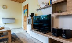 Der charmante Bungalow bietet eine gemütliche Unterkunft für zwei Personen. Das Haus verfügt über einen offenen Wohn- und Küchenraum, der mit einer Küchenzeile, einem Esstisch sowie einem Sofa und TV ausgestattet ist. Ein separates Schlafzimmer sorgt für erholsame Nächte, während das angrenzende Bad mit Dusche den Wohnkomfort abrundet. Der Bungalow lädt mit seiner behaglichen Atmosphäre und der einladenden Terrasse zum Verweilen im Freien ein und bietet eine charmant-rustikale Alternative zum modernen Standard.
