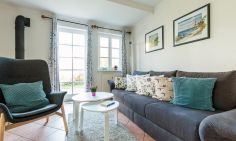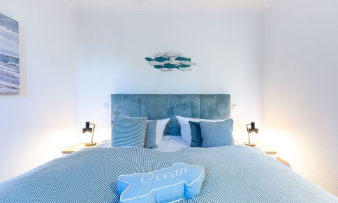 Die niedliche Erdgeschosswohnung erwartet dich mit einem neu eingerichteten und offenen Wohnbereich. Gemütlichkeit versprechen die Couch und der Sessel am Gaskaminofen mit TV-Bereich. Die integrierte Küchenzeile ist komfortabel ausgestattet und hat alles was es zum Kochen braucht. Das Schlafzimmer ist mit einem Doppelbett und einem zweiten TV ausgestattet. Ein Bad mit Dusche/WC rundet die Ferienwohnung ab. Für eine zusätzliche Aufbettung kann die Couch im Wohnbereich ausgeklappt werden. Helle, freundliche Farben und der Einrichtungsmix aus Landhaus und Scandi sorgen für Urlaubs-Feeling und Wohlfühlatmosphäre.