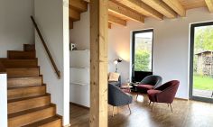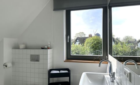 Das Haus wurde im März 2022 vollkommen neu gestrichen, die Silikonfugen ersetzen wir, die unvermeidbaren Fingerabdrücke und Kofferspuren an Wänden werden regelmäßig beseitigt. Baurechtlich war leider keine größere Zufahrt möglich, aber auch sehr große Autos passen oder können auf dem anliegenden Gemeindeparkplatz abgestellt werden. Viele unsere Gäste freuen sich über die klaren Linien des Hauses – ohne Vorhang im Esszimmer (in den Schlafzimmern gibt es natürlich Verdunklungsvorhänge). Wir gehören auch zu dieser Gruppe.
