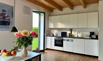 Wir haben mit zwei Familien in der Wohnung 'HANS' gewohnt. Die Lage ist prima, ein Auto aber notwendig, um die schönen Strände und Ortschaften zu besuchen. Die Schlaf- und Badezimmer sind klasse und in ausreichender Größe. Das Erdgeschoss bietet genügend Platz, um auch mal einen regnerischen Tag zu verbringen. Der Garten ist für Kinder ideal, schön wäre allerdings ein Wasseranschluss für Planschbecken etc. Toll ist der Insektenschutz in den Schlafzimmern, der ein Schlafen bei offenem Fenster ermöglicht. Im Erdgeschoss fehlt dieser leider, so dass man immer daran denken sollte die Fenster zu schliessen - die angrenzenden Wiesen mit Schafen und Hühnern locken Mücken und Fliegen. Verbesserungsvorschläge: - Neuer Sonnenschirm für die tolle Terrasse - der vorhandene ist leider kaputt. - Die Pfannen in der Küche sollten ausgetauscht werden. - Rasen mähen Super: - Toller Esstisch für viel Leute - gemütlicher Wohnbereich - ausreichend Gartenstühle vorhanden - absolut ruhig! Wir werden auf jeden Fall wieder kommen!