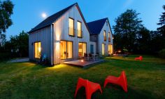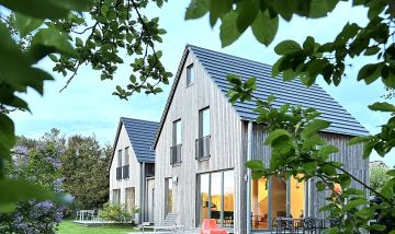Eine moderne Architektur und ökologische Holzbauweise sind charakteristisch für dieses Landhaus nahe der Ostsee. Im Erdgeschoss erwartet dich ein großzügiger und lichtdurchfluteter Wohnraum mit klarem Design und retroinspirierten Möbeln. Mit der Holzbalkenkonstruktion in der Decke und dem Echtholzparkett wird das Naturmaterial Holz auch im Innenbereich wieder aufgegriffen und sorgt für eine tolle Wohnatmosphäre. Die Küchenzeile und der große Esstisch fügen sich harmonisch in den Wohnbereich ein. Ein Gäste-WC und eine begehbare Garderobe befinden sich ebenfalls auf der unteren Etage. Im Obergeschoss erwarten dich drei cleane Schlafzimmer, die jeweils mit einem Doppelbett ausgestattet sind - handgefertigt vom Tischler. Ein modernes Badezimmer mit Dusche/WC rundet das Urlaubsdomizil perfekt ab.