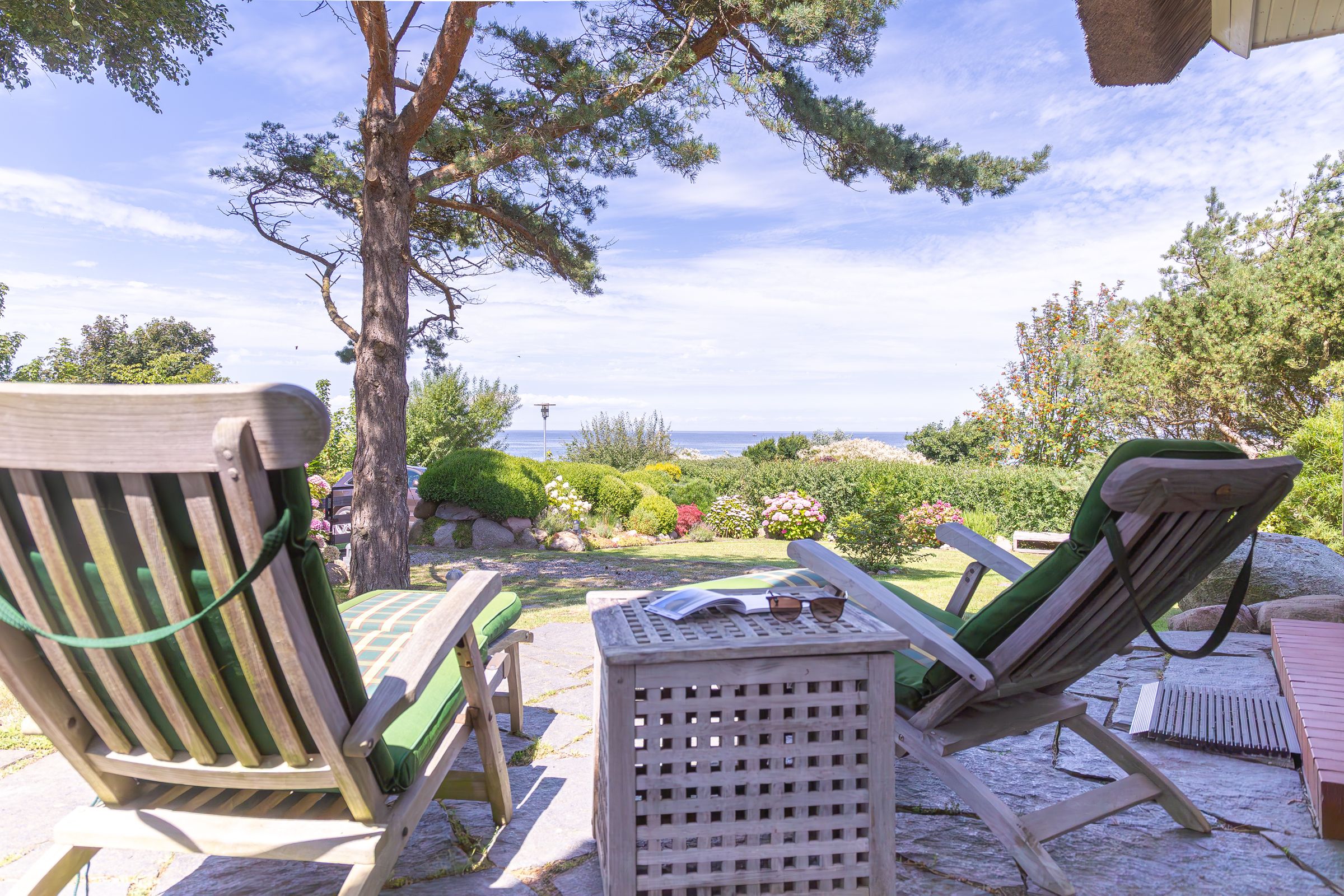 Das traumhafte Grundstück verfügt über zwei Terrassen mit Nord-West-Ausrichtung und mit Süd-West-Ausrichtung. Hier kannst du dich treiben lassen, entspannen und den Abend mit einem einzigartigen Blick auf die Ostsee ausklingen lassen. Dir steht 1 PKW-Stellplatz zur Verfügung.