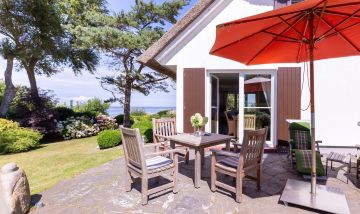 Am Steilufer und somit in bester Lage von Ahrenshoop befindet sich das Haus am Hohen Ufer. Der traumhafte Ostseeblick und wunderschöne Naturgarten gehören zu den Highlights des fischlandtypischen Ferienhauses mit zwei Einheiten. Viel dichter am Meer kann man nicht urlauben. Trotz der strandnahen Lage wohnst du sehr zentral. Der Ortskern ist mit seinen Shoppingmöglichkeiten, Restaurants und Galerien in wenigen Minuten zu Fuß zu erreichen.