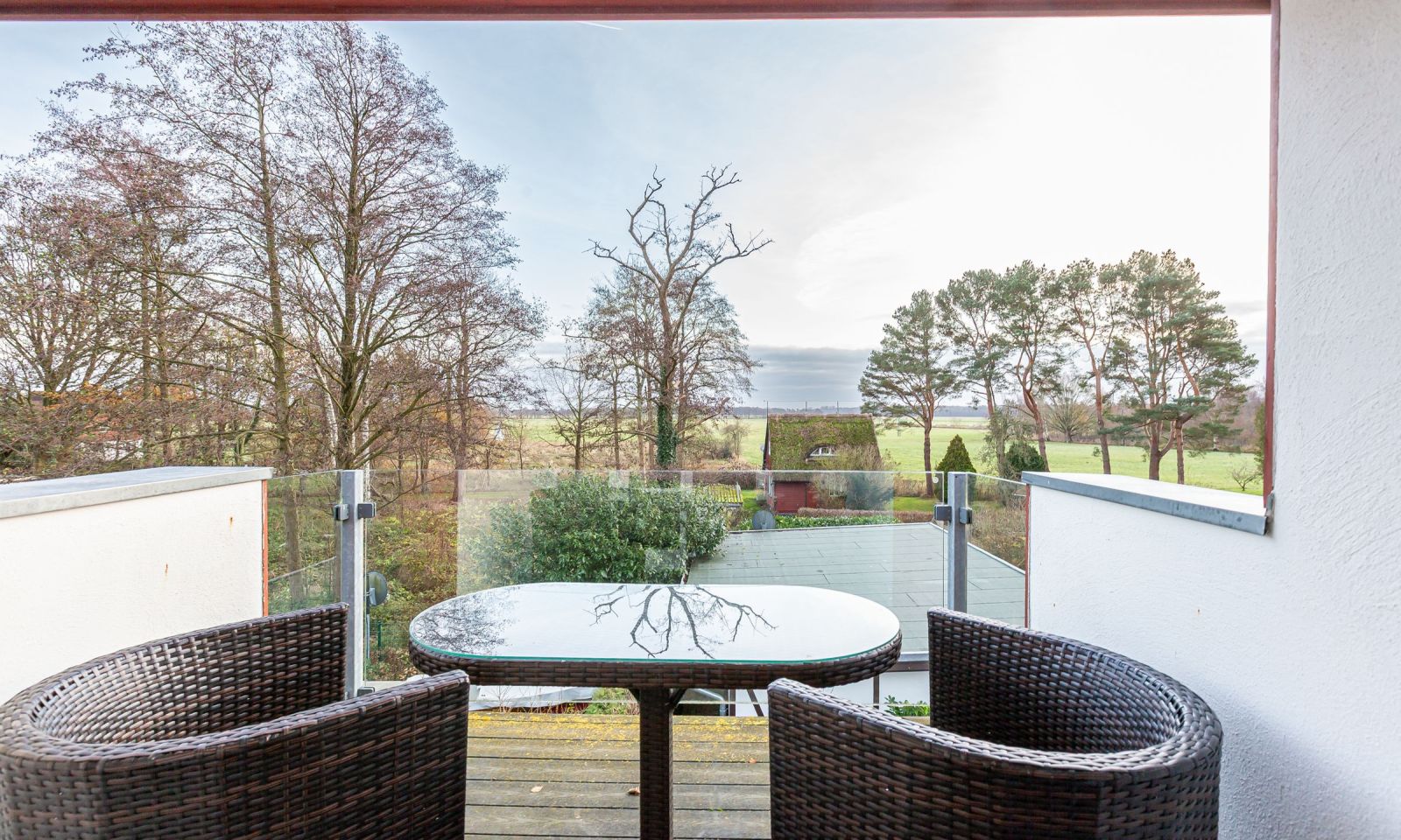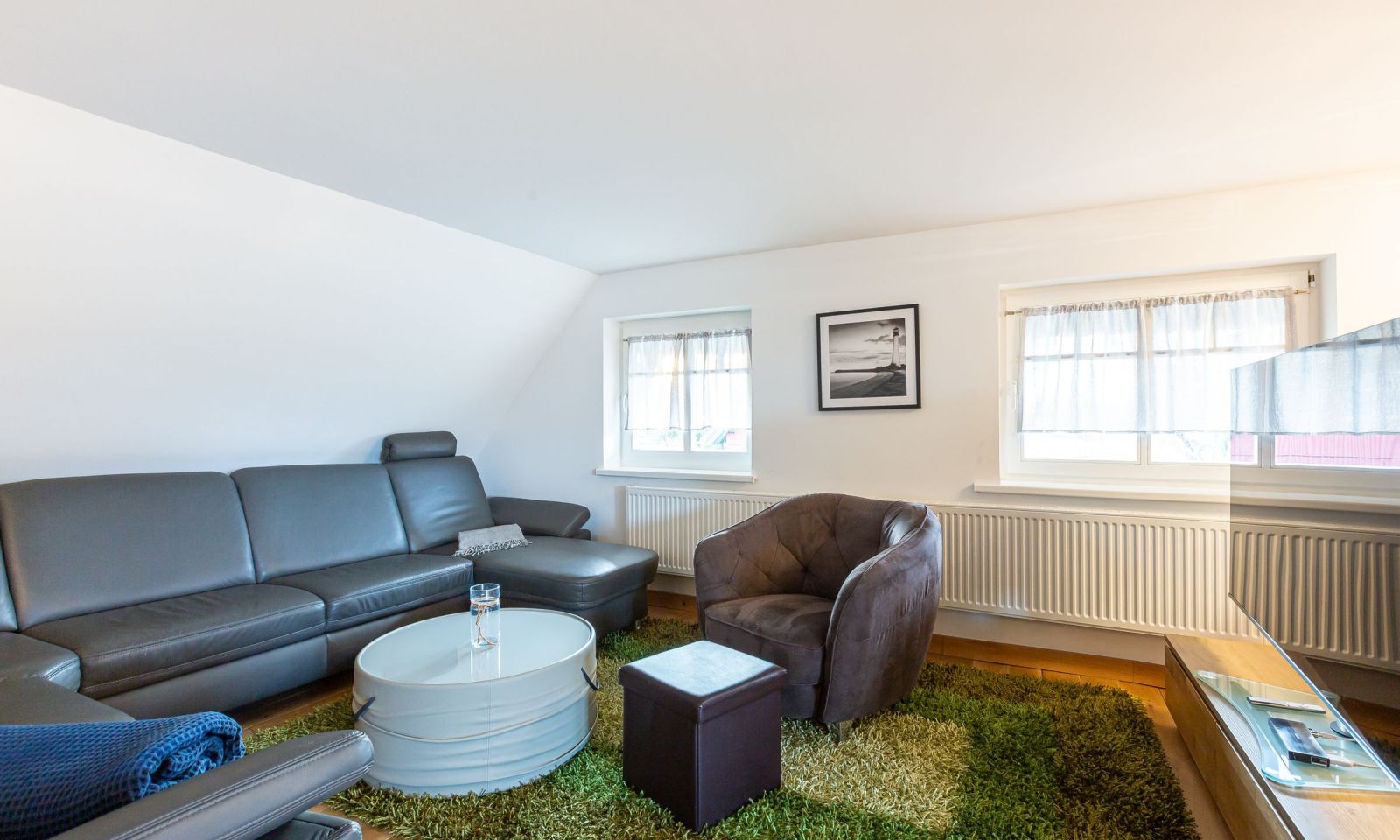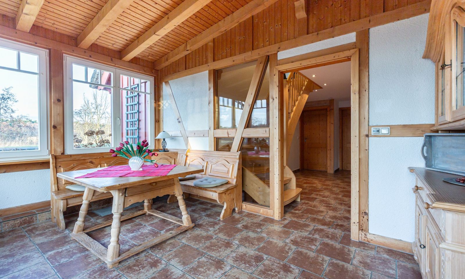 Noch eine Treppe höher erwartet dich ein Chillout-Bereich mit Sofa – der perfekte Ort, um die Ruhe zu genießen und den Ausblick auf die umliegende Natur schweifen zu lassen. Ein kleiner Balkon ergänzt das Angebot und schafft zusätzlichen Raum für entspannte Momente an der frischen Luft.