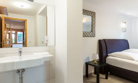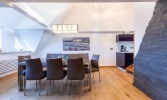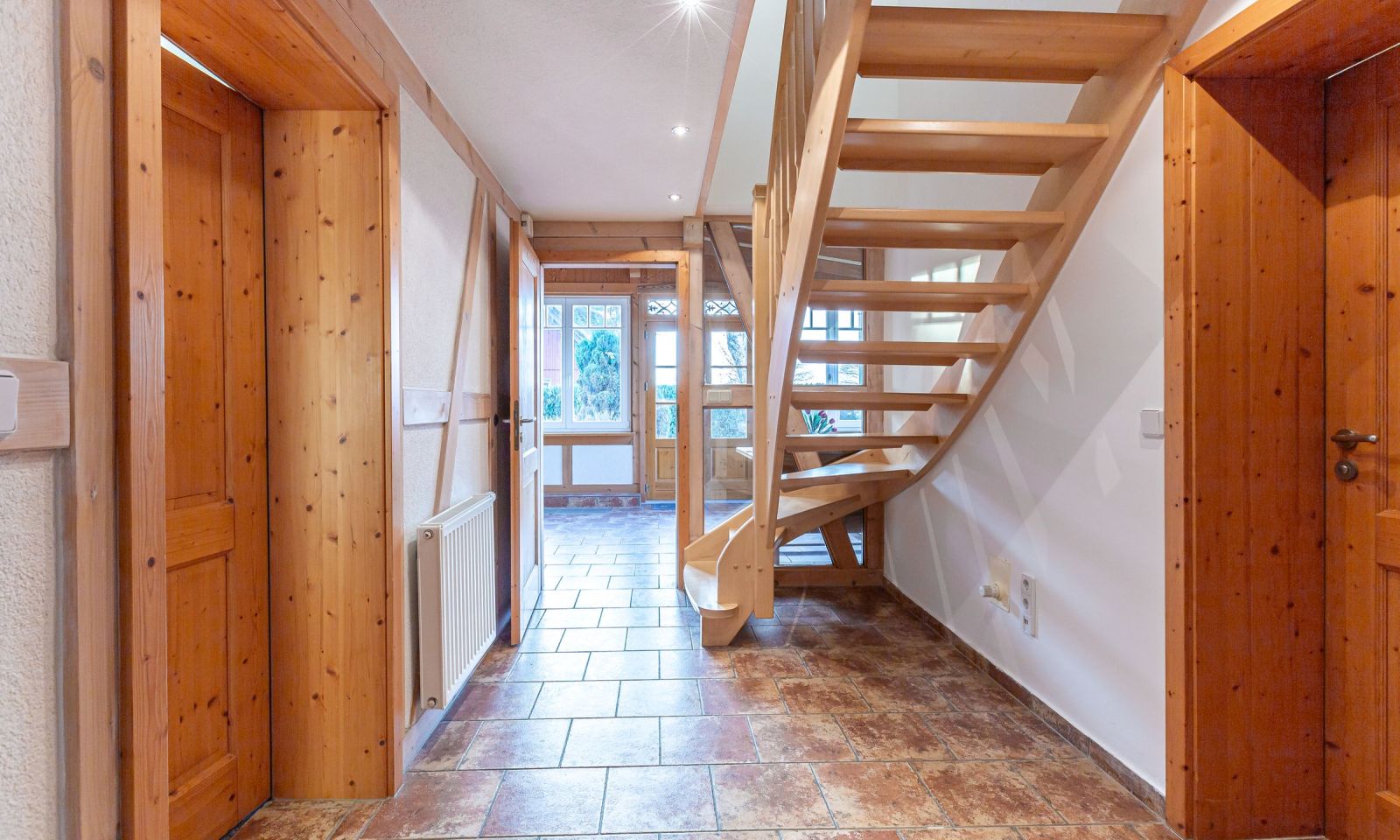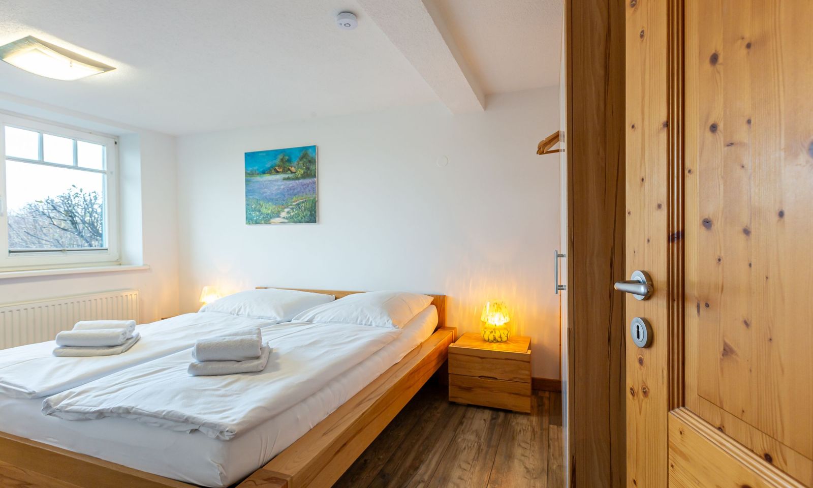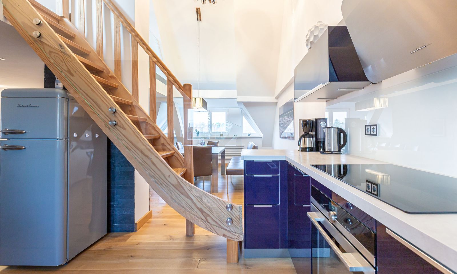 Noch eine Treppe höher erwartet dich ein Chillout-Bereich mit Sofa – der perfekte Ort, um die Ruhe zu genießen und den Ausblick auf die umliegende Natur schweifen zu lassen. Ein kleiner Balkon ergänzt das Angebot und schafft zusätzlichen Raum für entspannte Momente an der frischen Luft.