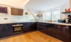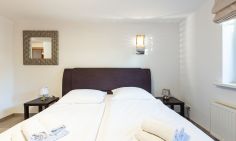 Beim Eintritt stehst du in der großen Veranda, die viel Licht hereinlässt und einen herrlichen Blick ins Grüne ermöglicht. Mit drei gemütlichen Schlafzimmern und zwei Bädern en suite ist ausreichend Platz für Familie und Gäste im Erdgeschoss vorhanden. Der Wohn- und Küchenbereich befindet sich im ersten Stock und lädt mit einem großen Esstisch, einer Sofaecke sowie einem TV zu entspannten Stunden ein. Die voll ausgestattete Küche macht das gemeinsame Kochen zum Vergnügen. Ein drittes Bad rundet den Wohnkomfort ab.