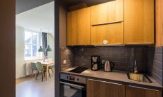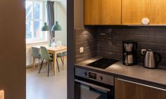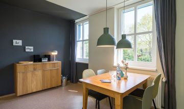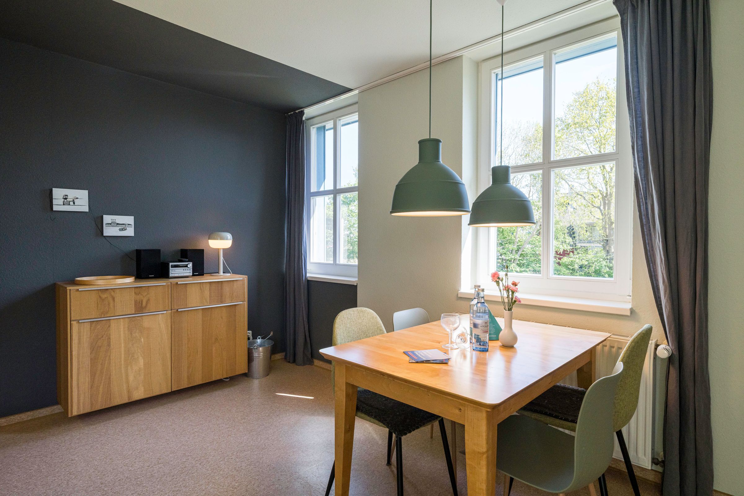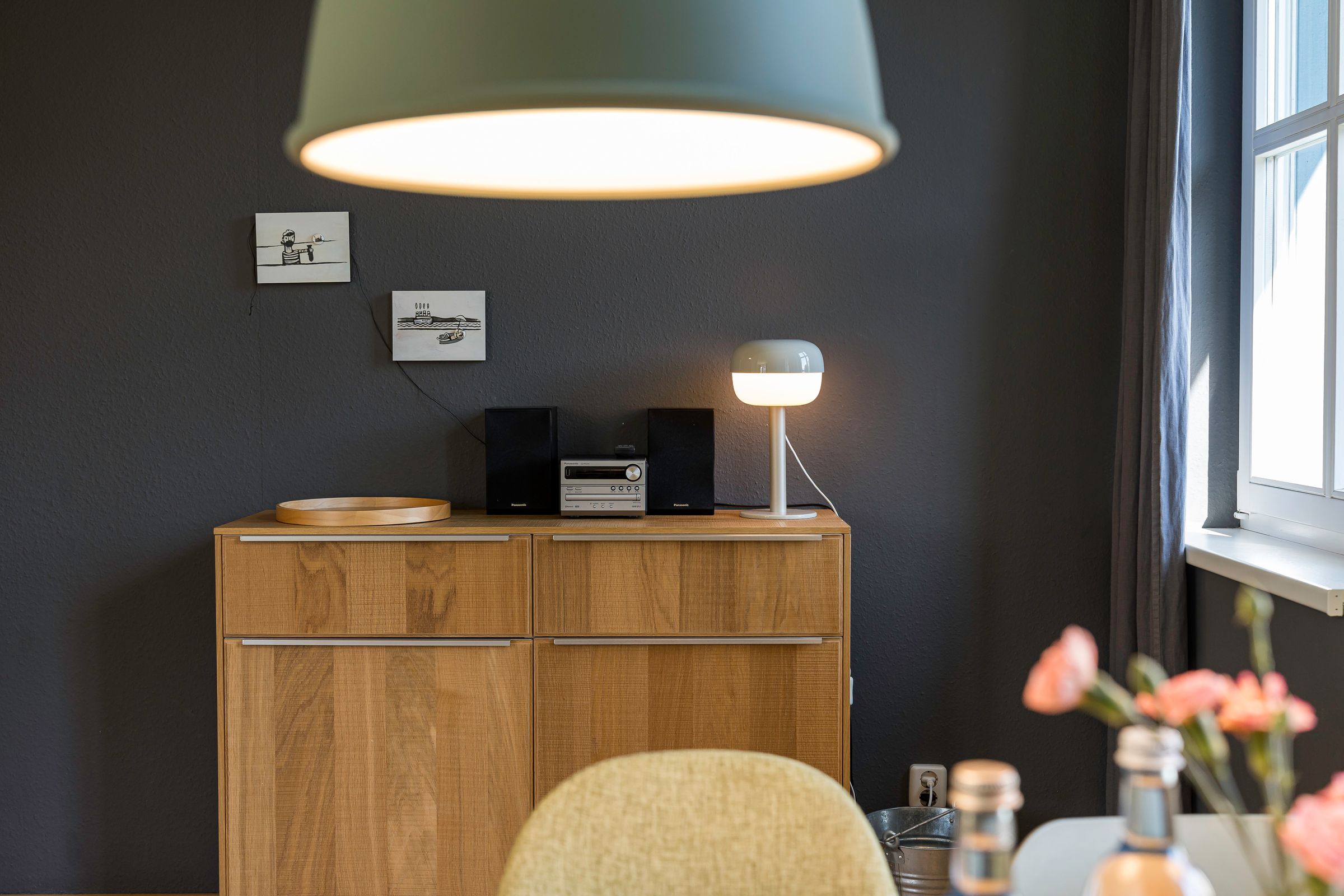 Auf dem Hof bietet eine stylische Sauna mit Ruheraum und Dusche einen besonderen Erholungsfaktor. Auch der gemeinschaftliche Garten mit Grillplatz, Schaukel und Tischtennisplatte sorgt für gesellige Stunden. Damit sich die Unterkunft perfekt für Familien eignet, stehen zudem ein Kinderbett und ein Hochstuhl bereit. Ein überdachter Fahrradstellplatz und ein PKW-Stellplatz sorgen für zusätzlichen Komfort. Eine wunderbare Unterkunft, die Ästhetik, Funktionalität und Erholung perfekt vereint.