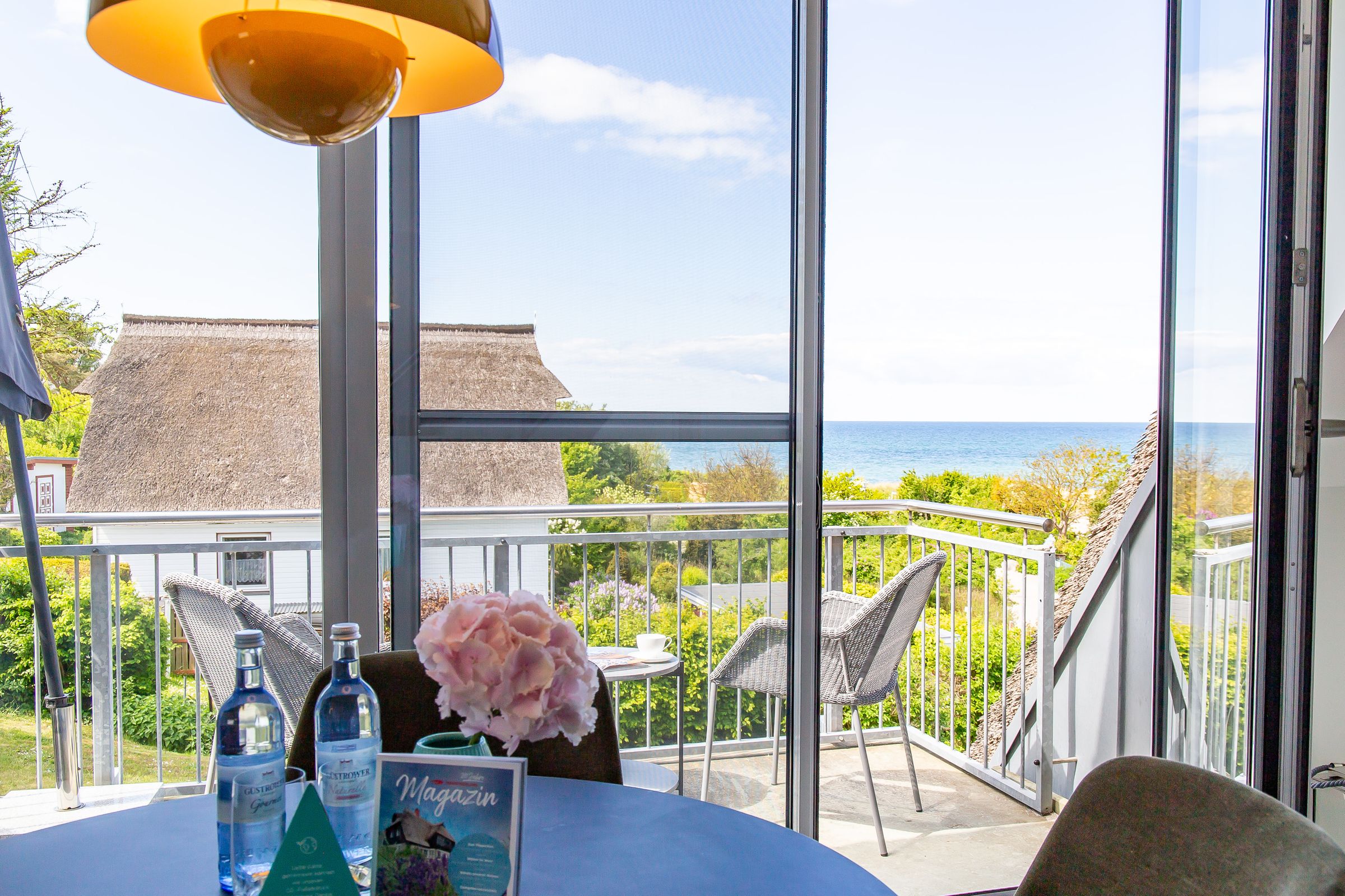 Der westseitige Balkon bietet zudem den idealen Rahmen, um unter freien Himmel neue Energie zu tanken. Mit dem Blick auf das endlose Blau des Meeres, und dem beruhigenden Rauschen der Wellen ist es der perfekte Ort, um den Alltag zu vergessen und vollkommende Entspannung zu genießen.