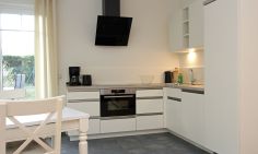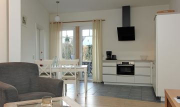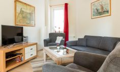 Die helle und freundliche Erdgeschosswohnung verfügt über einen offen gestalteten Wohn- und Küchenbereich. Hier kannst du entweder auf der Couch vor dem TV oder am sonnigen Esstisch klönen. Die integrierte Küchenzeile verfügt über alles, was du zum Kochen benötigest. Weiterhin verfügt die Wohnung über ein Schlafzimmer mit zwei Einzelbetten sowie ein zweites Schlafzimmer mit einem Doppelbett. Das Tageslichtbad mit Dusche und ein separates WC gehören ebenfalls zur Wohnung. Ein Kinderreisebett und ein Kinderhochstuhl stehen dir bei Bedarf kostenlos zur Verfügung.