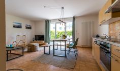 Schöne gemütliche Wohnung in toller Lage! Ein Sonnenschirm auf der Terasse und etwas mehr Geschirr würden alles perfekt machen.