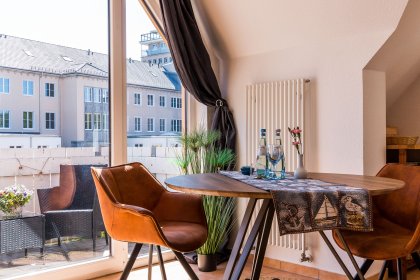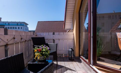 Ein kleiner Balkon gehört ebenfalls zur Ferienunterkunft und kann vom Wohnbereich betreten werden. Hier kannst du deinen Urlaubstag bei einem sonnigen Frühstück starten oder am Abend ausklingen lassen. Auf dem 650 Quadratmeter großen Grundstück mit kleiner Rasenfläche befindet sich eine Sitzbank. In dem Nebengebäude befindet sich ein Grill, der von allen Ferienmietern des Hauses genutzt werden kann. Ein Pkw-Stellplatz je Wohnung steht zur Verfügung.