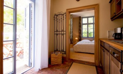 Die gemütliche Erdgeschosswohnung empfängt dich in einem hellen Wohnraum mit einer Sitzecke und dem kleinen Essbereich am Fenster. Die Küchenzeile (ohne Backofen) befindet sich in einem separaten Raum. Von hier aus gelangst du auch direkt auf die Terrasse. Das Schlafzimmer verfügt über ein Doppelbett. Weiterhin schließt sich ein exklusives Bad mit Dusche/WC an.