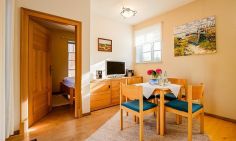 Die gemütliche Erdgeschosswohnung verfügt über einen hellen Wohnraum mit einer gemütlichen Sitzecke. Die Küchenzeile und der Essbereich sind unmittelbar in den Wohnraum integriert. Das Schlafzimmer ist mit einem Doppelbett (160 cm) ausgestattet. Ein modernes Bad mit Dusche/WC rundet diese Ferienwohnung ab.