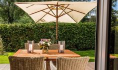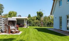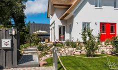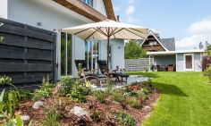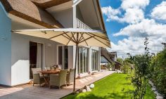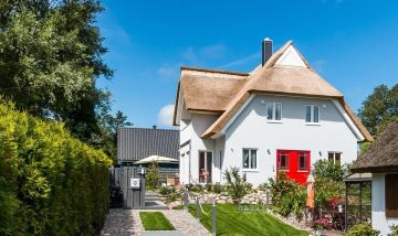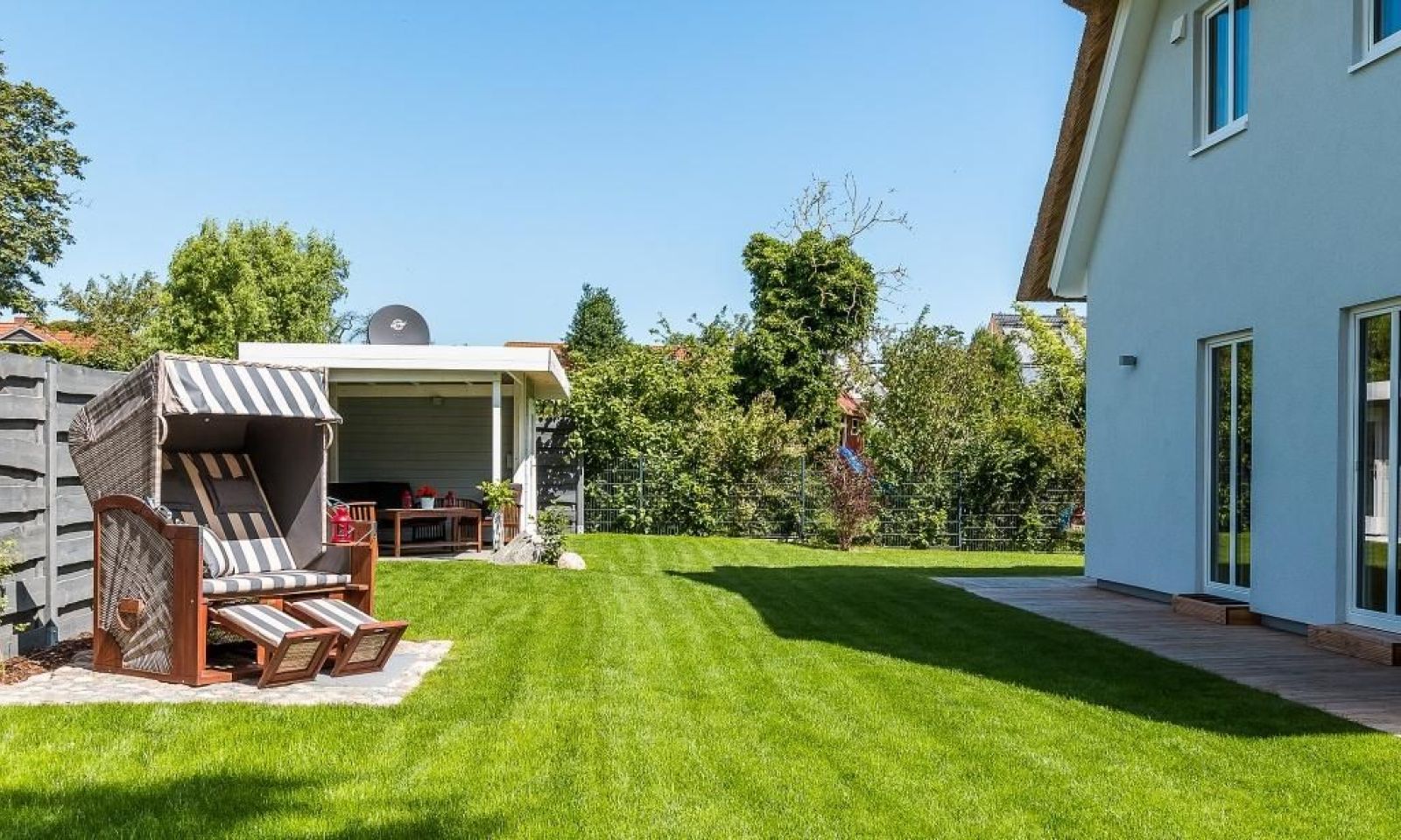 Der Außenbereich begeistert mit einem 750 Quadratmeter großen Grundstück, dass liebevoll angelegt wurde. Neben der überdachten Sitzecke im Garten erwartet dich auch ein Strandkorb am Haus und vier Sonnenliegen. Die Terrasse in Südlage, der Grillplatz mit Gasgrill und weitere Sitzmöglichkeiten runden das Wohlfühl-Ensemble perfekt ab. Zum Ferienhaus gehören zwei PKW-Stellplätze sowie eine hauseigene Ladestation für E-Autos.
