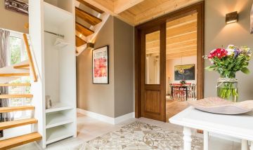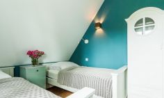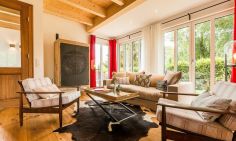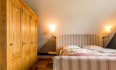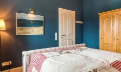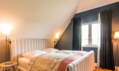 Im fischlandtypischen Stil erbaut, versprüht schon die Außenansicht des Hyggelig Hus Urlaubsfeeling pur. Auch der Innebereich begeistert mit dem geschmackvollen und individuellen Stilmix aus dänischen Vintage-Unikaten, Industrial- und Landhausdesign. Im Erdgeschoss erwartet dich neben der Diele der großzügige und liebevoll eingerichtete Wohnbereich mit einem Kamin. Der Eichenboden verleiht dem Raum zusätzlich Gemütlichkeit. Die offene Premium-Echtholz-Einbauküche mit Kochinsel und hochwertiger Küchenausstattung (Miele, Braun und Villeroy & Boch) lässt garantiert das Herz jedes Kochbegeisterten höher schlagen. Der Essbereich schließt sich der hochwertigen Küche an. Ein Schlafzimmer, ausgestattet mit einem Doppelbett, ein separates WC sowie ein Hauswirtschaftsraum befinden sich ebenfalls im Erdgeschoss. Eine entspannte Auszeit findest du auch im hauseigenen Spa mit Sauna und Rainshower-Dusche. Die Gartendusche, die über den direkten Zugang von der Sauna aus erreichbar ist, sorgt für den Extra-Kick. Im Obergeschoss erwartet dich eine großzügige Lese-Galerie mit Austritt auf den herrlichen Balkon. Ein Schlafzimmer mit Doppelbett, ein Kinderzimmer mit zwei Einzelbetten, ein traumhaftes Bad mit freistehender Badewanne und Rainshower-Dusche sowie ein separates WC befinden sich ebenfalls auf der oberen Etage. Handgefertigte Dekoelemente und ausgewählte Designermöbel im gesamten Haus machen dieses wunderschöne Ferienobjekt zu einem ganz besonderen Quartier für Design-Fans und Individualisten.