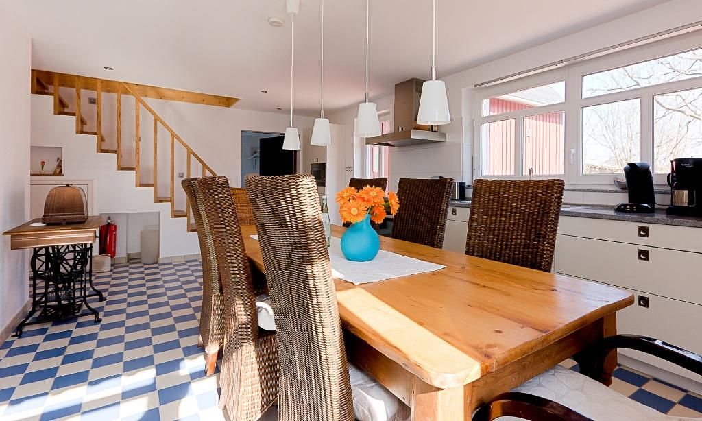 Das Haus liegt fußläufig max. von der Ortmitte mit vielen kleinen Läden, den Künstlerkaten sowie Restaurants und Cafés entfernt. Das Räucherhaus mit leckerem Fisch am Ahrenshooper Hafen und der Reiterhof Völkner (unterhaltsame Kutschfahrten und Ausritte) liegen links und rechts gleich um die Ecke. Mit Hingabe und Leidenschaft wurde ein bezauberndes maritimes Kleinod in diesem Haus erschaffen. Sei es das riesige Steuerrad gleich beim Betreten des Hauses oder die kleinen Seil-/ Flachklampen als Haken - es finden sich viele kleine und große Detail aus dem Seefahrerleben, die liebevoll ins Inventar einbezogen wurden. Ein schöner Ankerplatz für große und kleine Kapitäne mit einem Riesenschiff fürs abendliche Essen, Spielen und Klönen. Auf der kleinen Terasse wartet ein Ruheplätzchen mit Blick auf den Bodden. Zwar liegt das Haus an der Straße, die quer über den Darß führt, doch lassen die geschlossenen Fenster kaum Straßenlärm durch. Und trotz offener Fenster hatten wir geruhsame Nächte. Vielen Dank für diesen schönen Ort der Geselligkeit in diesen jetztigen Zeiten. Wir werden gern wiederkommen.