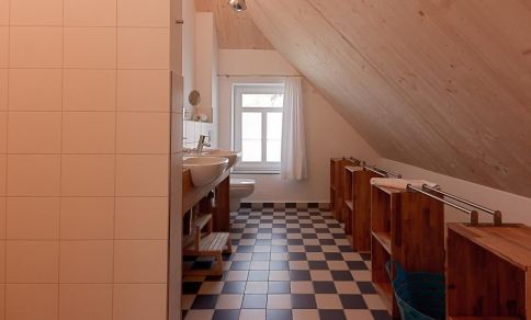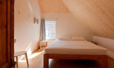 Neben einem abgeschlossenen Eingangsbereich mit Garderobe erwartet dich im Erdgeschoss ein heller Wohnraum mit einer gemütlichen Sitzecke am modernen Kaminofen. Über einen offenen Zugang gelangst du in die großzügige Küche im Landhausstil. Die hochwertige Einbauküche lässt keine Wünsche offen und bereitet garantiert jedem Hobbykoch Freude. Der Esstisch bietet ausreichend Platz für acht Personen und ist ein idealer Platz für gesellige Abende. Weiterhin findet ein Schlafzimmer mit Doppelbett auf der unteren Etage Platz. Das Bad ist mit einer Dusche, einer Badewanne sowie einem WC ausgestattet. Das Dachgeschoss beherbergt zwei Schlafzimmer jeweils mit einem Doppelbett (1x mit Überlänge) sowie ein Kinderschlafzimmer mit einem Doppelstockbett (mit Sicherung). Weiterhin befindet sich auch hier ein Bad mit Dusche/WC.