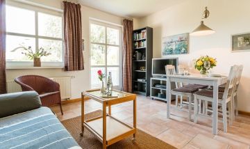 In zentraler Lage von Ahrenshoop erwartet dich diese gemütliche Maisonette-Wohnung. Dank der tollen Lage erreichst du das Meer in nur drei Minuten zu Fuß. Auch diverse Einkaufsmöglichkeiten, Restaurants, Cafés und Galerien sind nur einen Katzensprung entfernt. Hier kann das Auto den ganzen Urlaub über stehen bleiben.