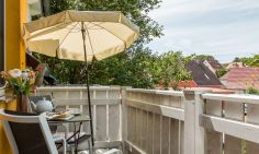 Zur Ferienwohnung gehört ein Balkon, von dem du den ganzen Nachmittag aus die Sonne genießen kannst. Hier lässt es sich herrlich entspannen, wenn du mal nicht am Strand spazieren oder liegen möchtest. Dir steht ein PKW-Stellplatz zur Verfügung. Ein abschließbarer Fahrradschuppen mit Lademöglichkeit für E-Bikes macht den Urlaub perfekt.