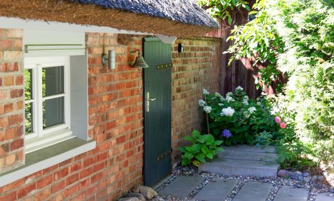 Die traditionelle Bauart von 1790 dieser wundervollen Reetdachkate „Kuhleger“ fügt sich harmonisch in die sanfte und abwechslungsreiche Umgebung der Wustrower Landschaft ein. Mit Blick auf den Kirchturm und den traumhaften Naturgarten vergisst man hier völlig, dass das Haus nah an der L21 liegt. Dafür genießt man dank seiner Lage kurze Wege bis zum Meer, zum Bodden und in das quirlige Zentrum des ehemaligen Seefahrerorts.